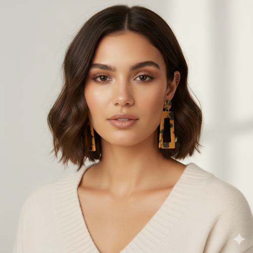 • ELLIS | Coole geometrische Acryl Harz Ohrringe in braun schwarzem Leopardenmuster