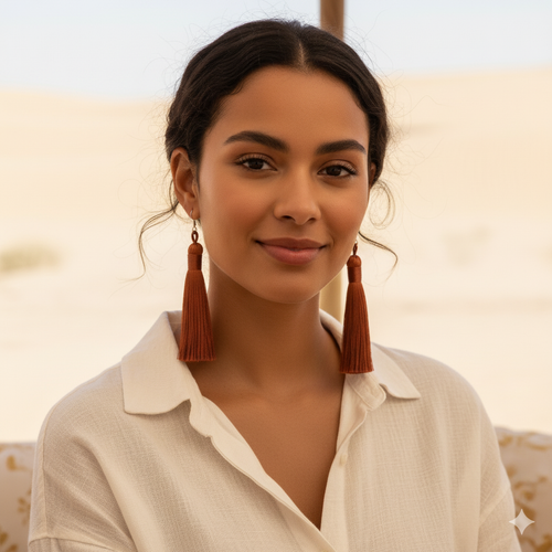 • NAOMI | Lange Ohrringe mit 925 Sterling Silberhaken und Quasten aus echten Seidenfäden in braun