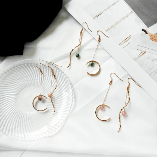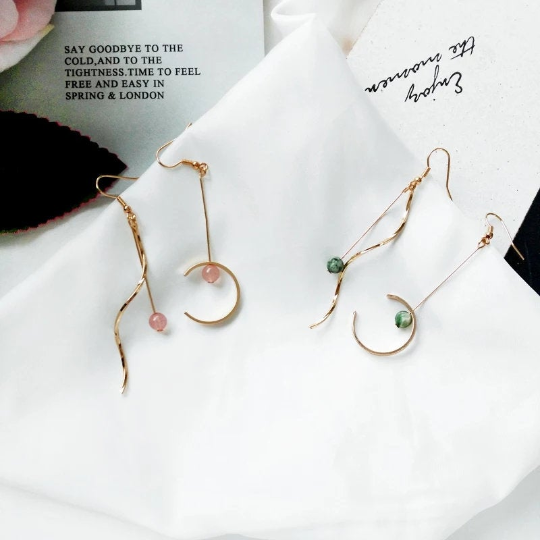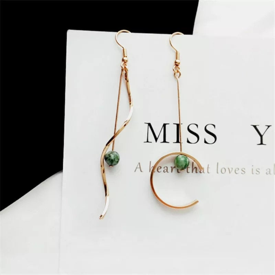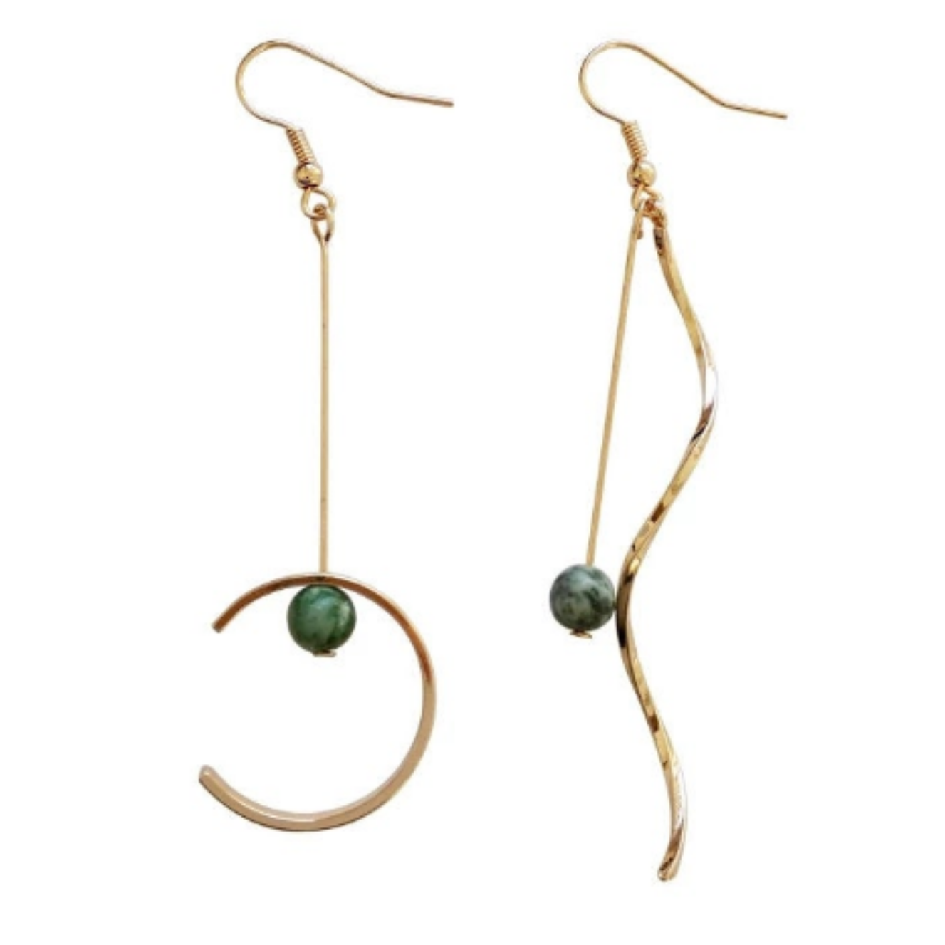 LEAH | Süße mismatched Hänger Ohrringe goldfarben mit grünen Ziosit Halbedelsteinperlen | Cute golden mismatched hanger earrings with green ziosite gemstone pearls