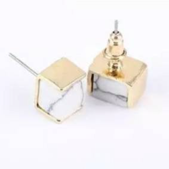 TULLIA | Coole goldfarbene Würfel Ohrstecker Ohrringe viereckig mit weiß grauem Marmor Muster