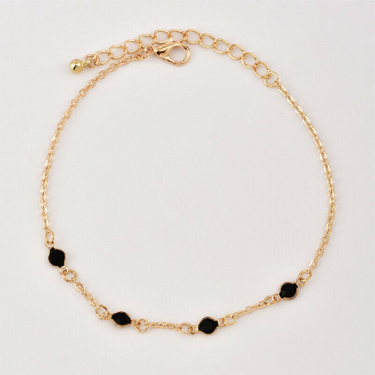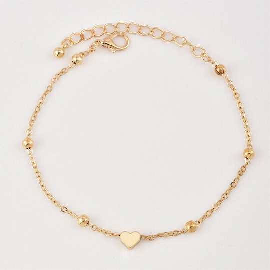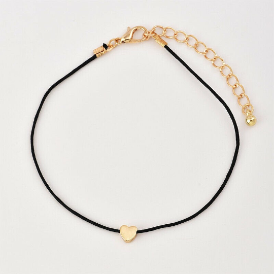 LEA | Süßes 4-teiliges Set mit schwarz goldfarbenen Fußkettchen Herzanhänger
