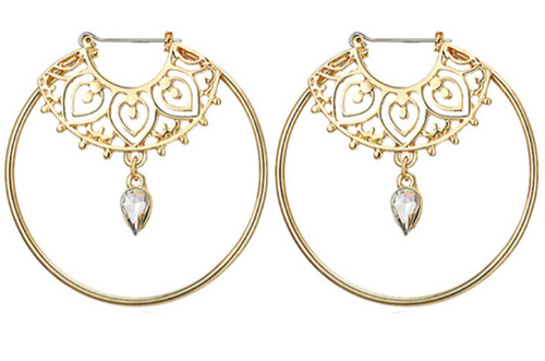 VANDANA | Süße goldfarbene Creolen Ohrringe mit Kristallen in exotischem Design