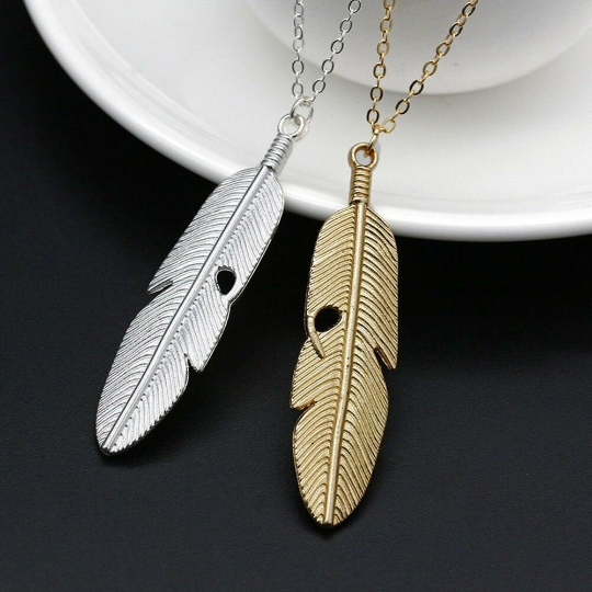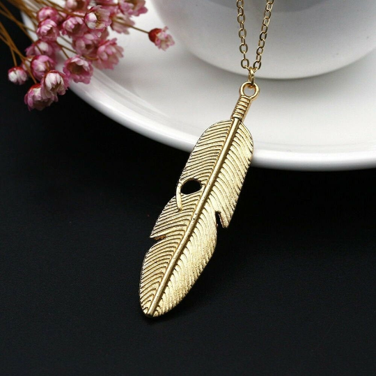 ARELY | Coole Western Boho Halskette Collier Feder Anhänger gold