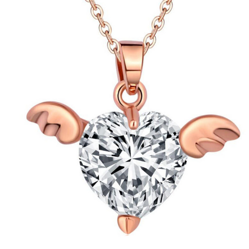LUZ | Süße Halskette in roségold mit Kristall Herz und Engelsflügeln