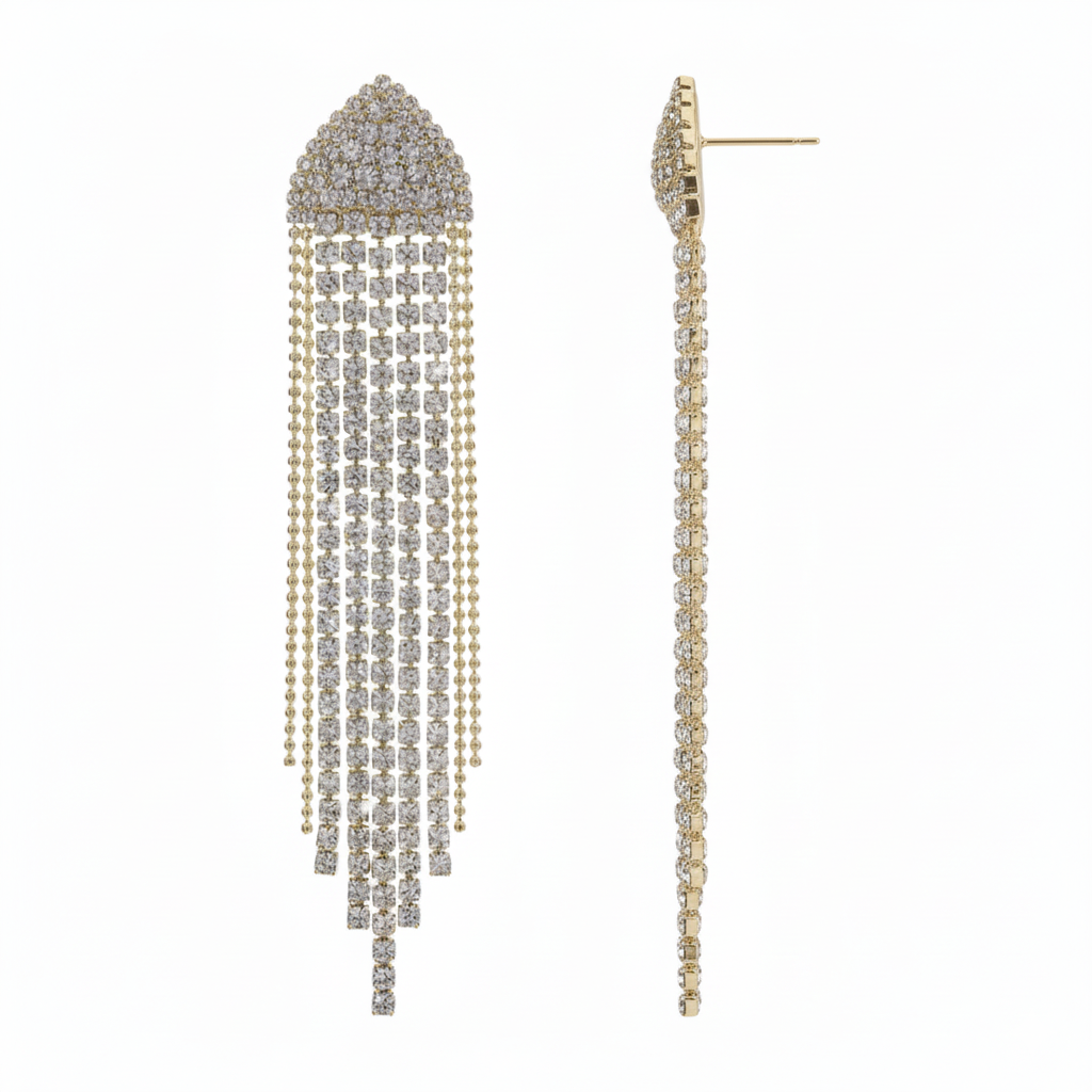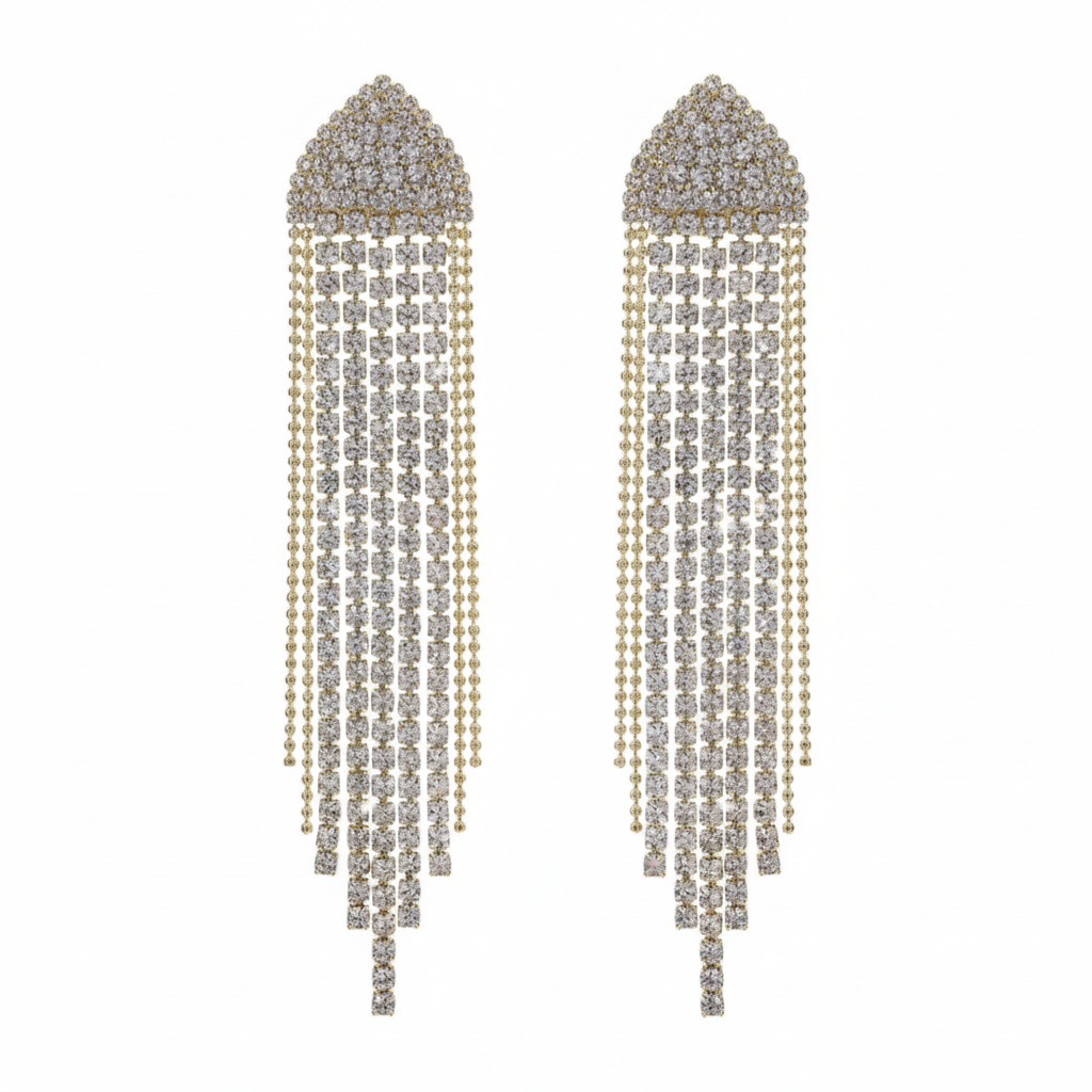 AUBRIELLE | Glamouröse Party Statement Ohrringe in gold mit klaren Kristallfäden