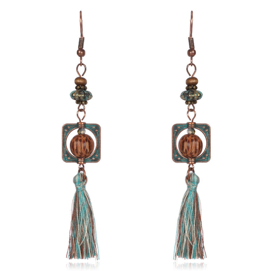 APONI | Schöne Indie Boho Ohrringe mit Quasten in türkis